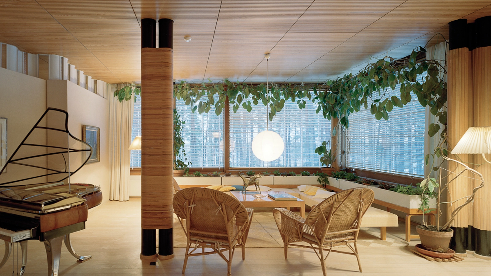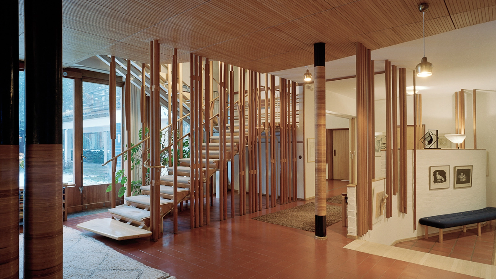 Indeed, Alvar Aalto used a similar device in his Villa Mairea – both to represent wrapping and the peeling of the bark on silver birch trees – but also as an actual jointing technique.