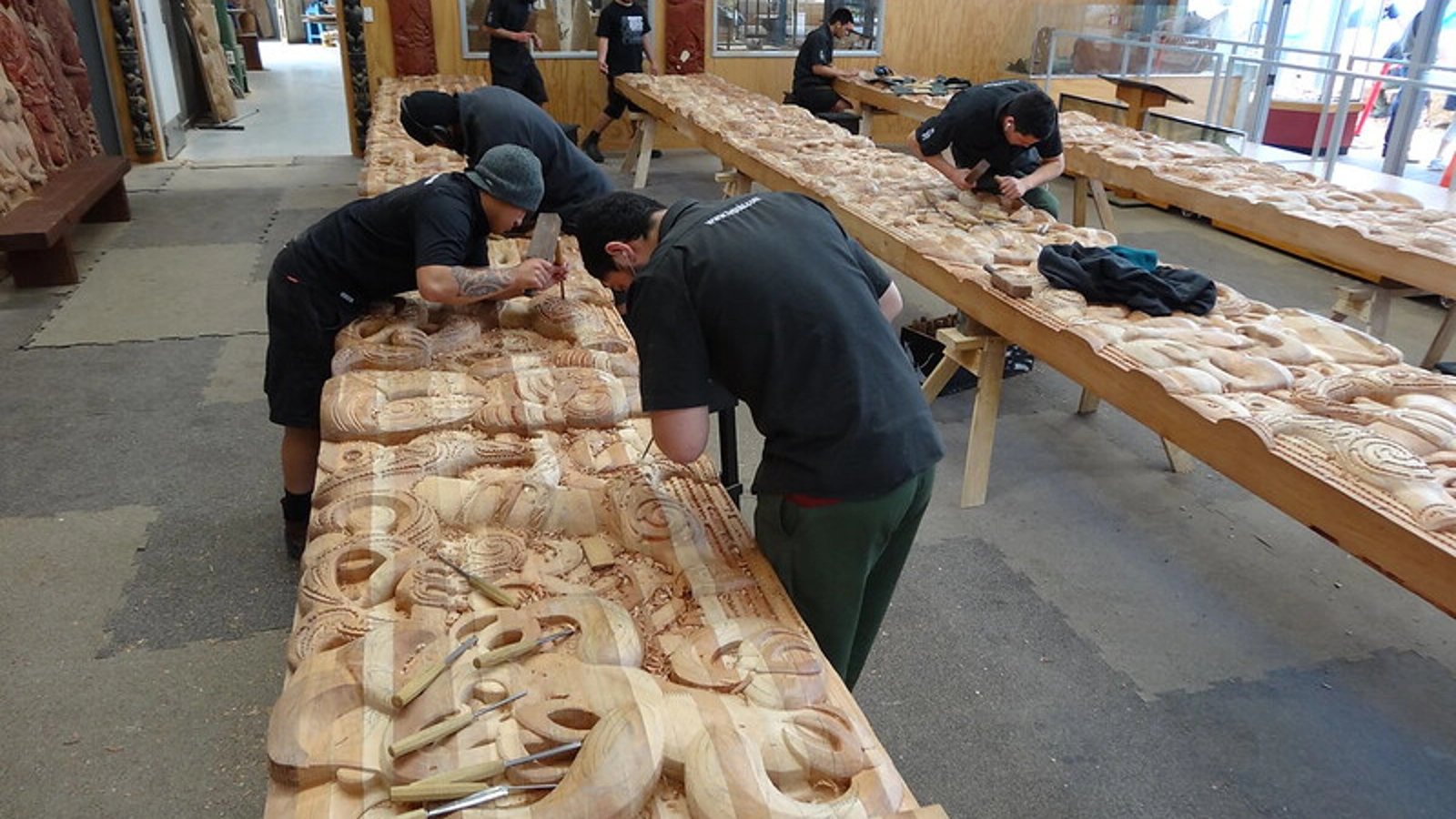 “Young Maori’s are given a three year course in how to carve using both traditonal and contemporary techniques... This process of carving onto everyday objects and enviornment makes everything ‘thier own’: part of them, thier families (Whanue) and community.”