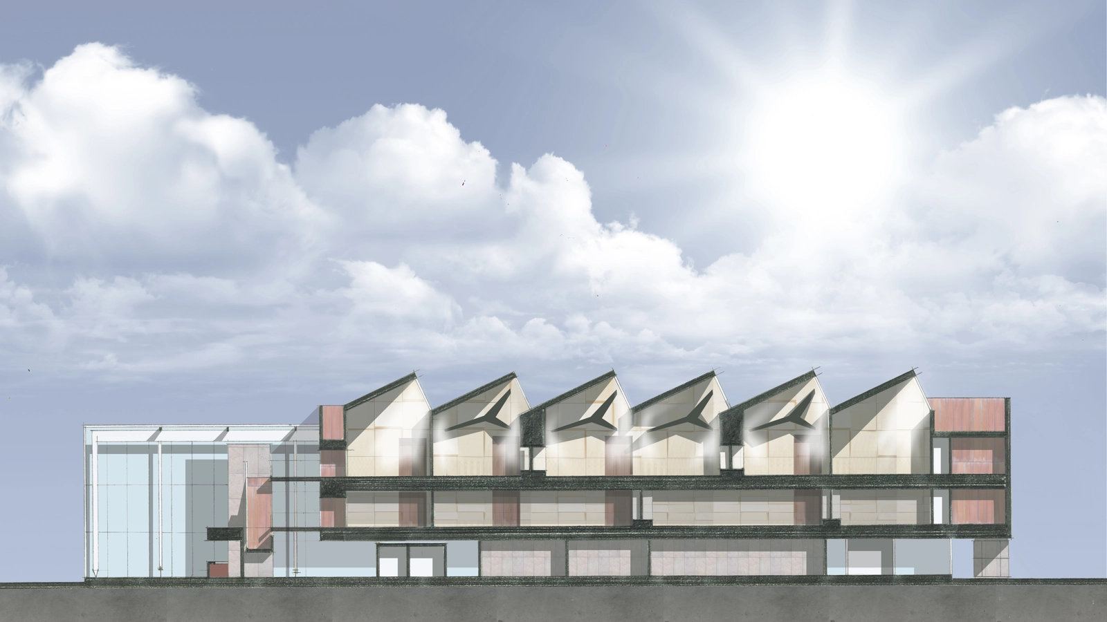 These functional requirements generate the three types of space that can be found in the plan and section – three layers of the overall.