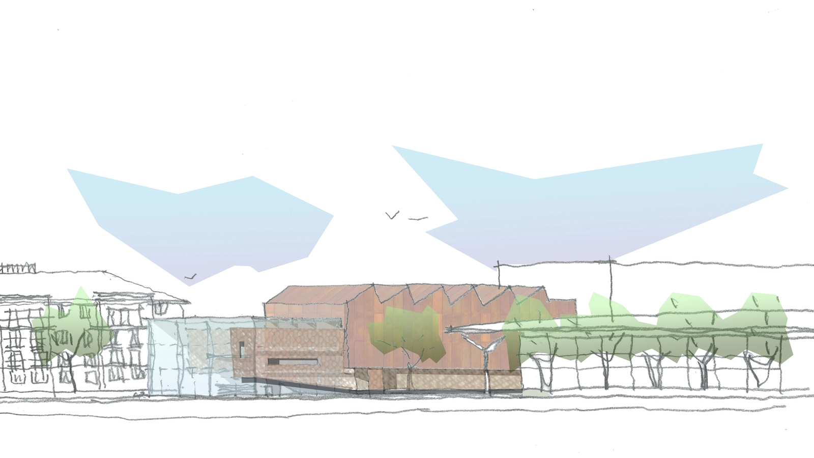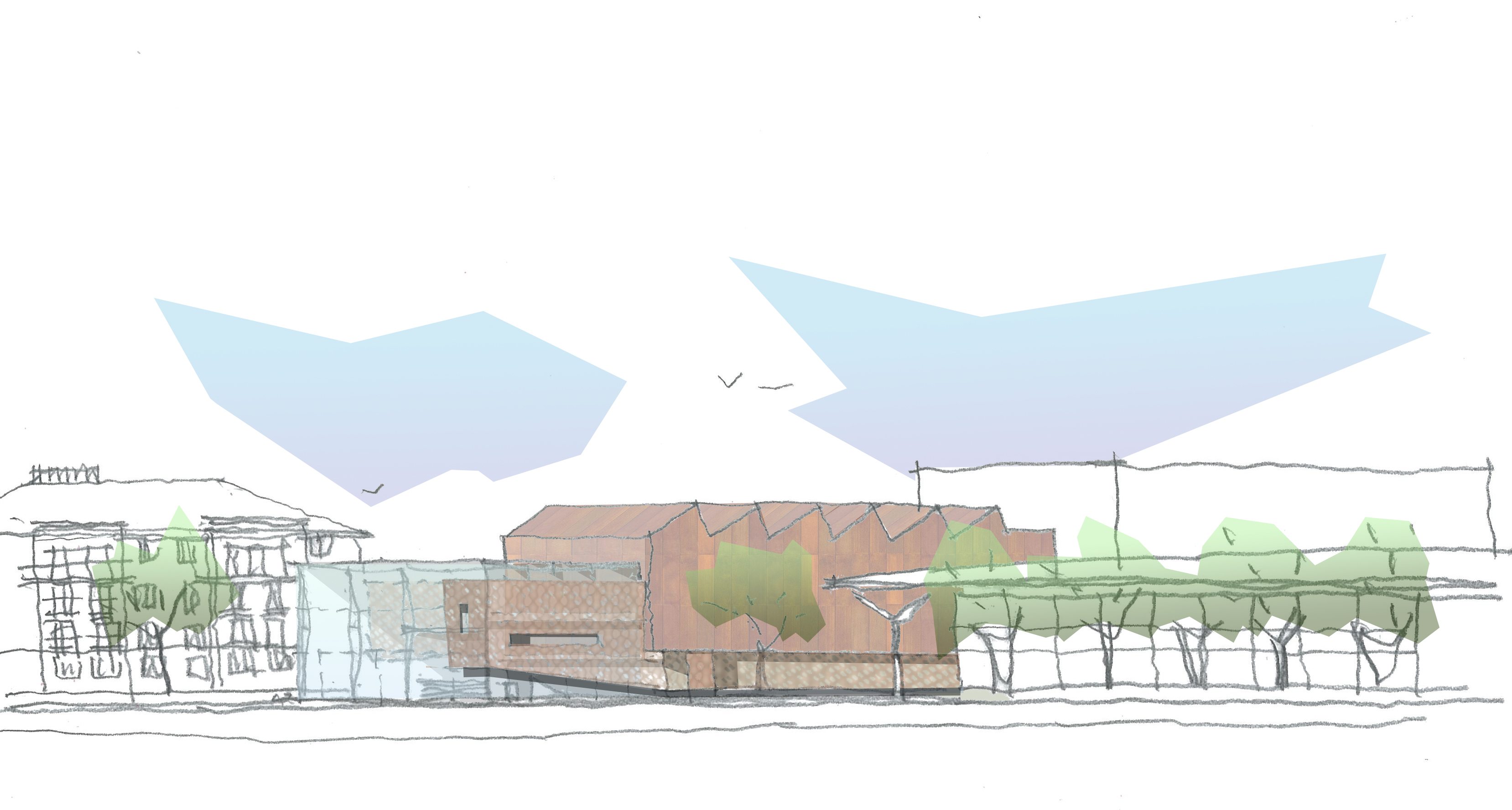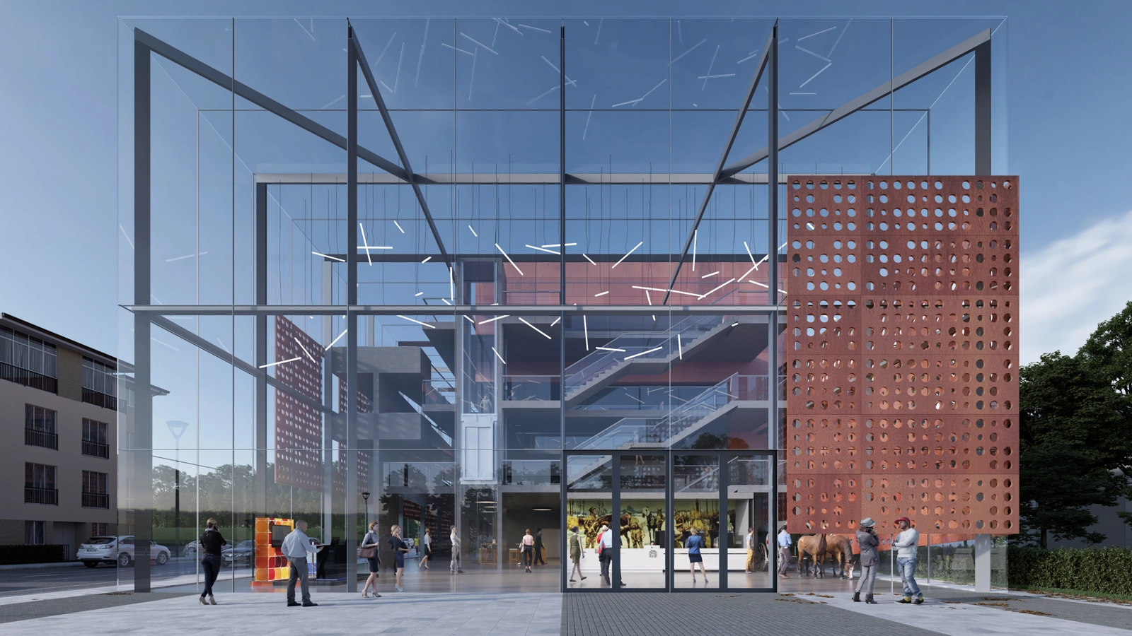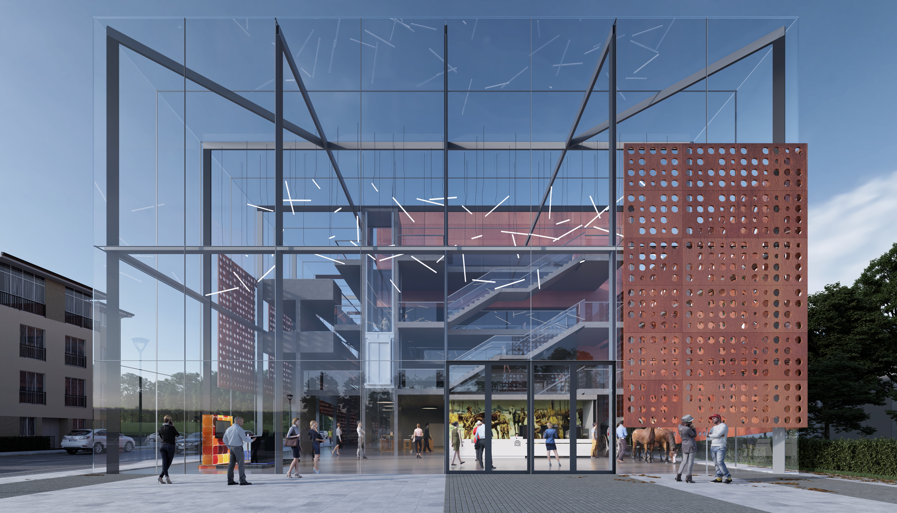 The museum could be seen as just a depository or container for these precious artefacts – at a dumb level an introspective ‘black box’. Certainly, the functional requirement for lots of the material and exhibits requires sensitive enclosure and a degree of environmental inertness. However, the museum wants public and community engagement and therefore an expression of transparency and openness is essential to suggest that the facility is indeed open to all.