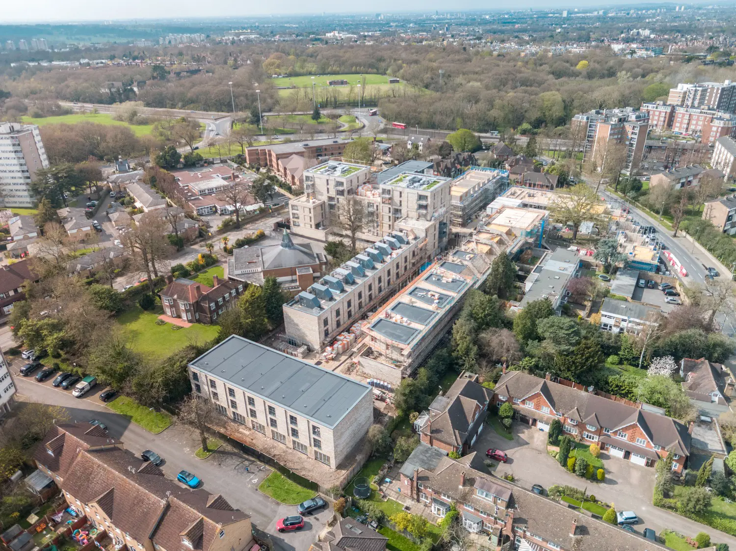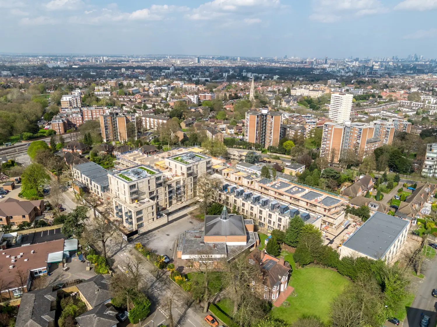 The site is nestled within a residential context, with an existing church located adjacent. Our concept has created a new public realm of streets and spaces around which new homes can be placed. The homes are Mews-type or Townhouse-type according to their situation. An apartment building provides a focal point at the entrance.