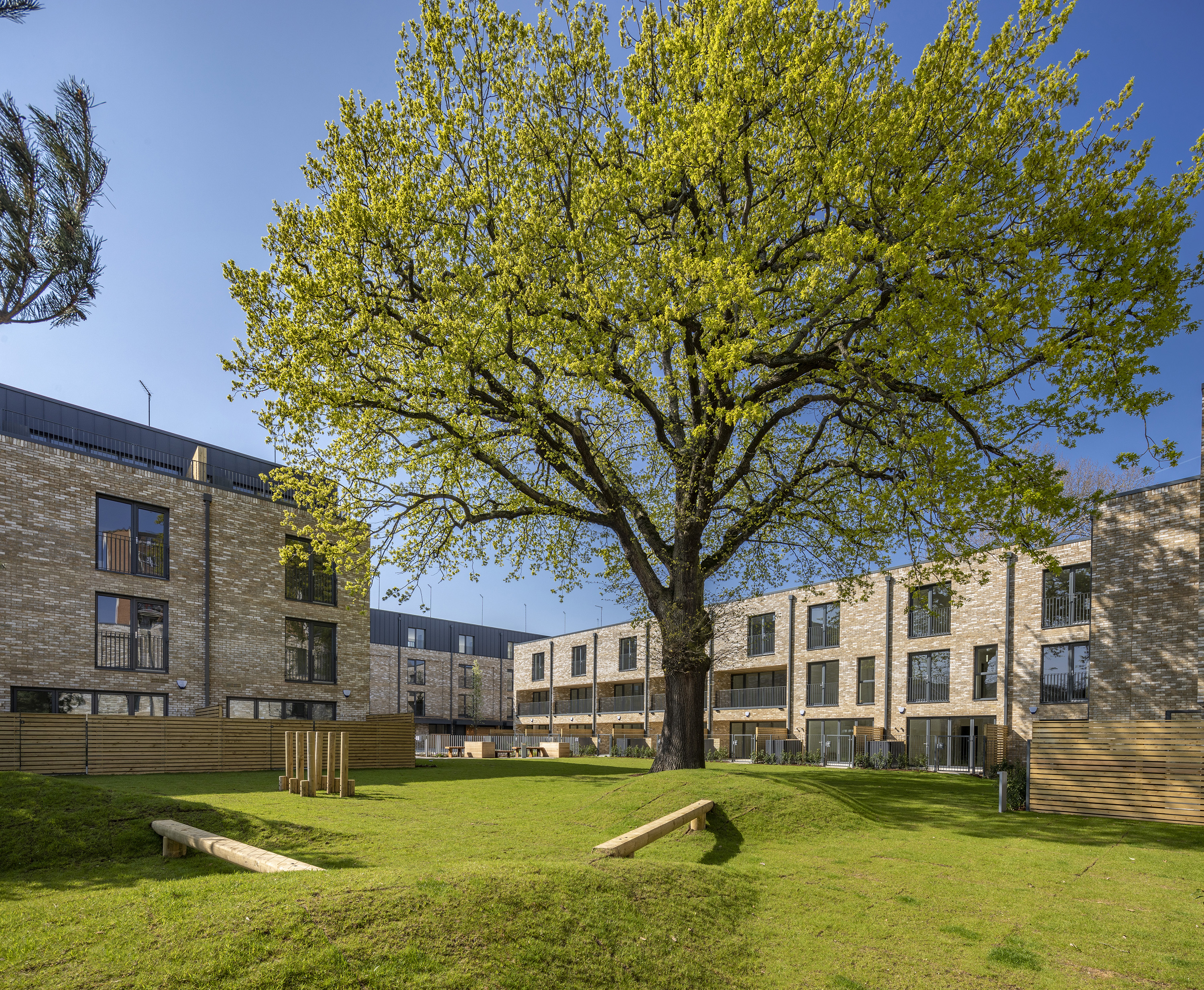 Our street and space strategy has allowed more homes to be created than had originally been anticipated. This arrangement has also allowed a historic oak tree planted by Capability Brown to be retained as the central feature of the new open space. A programme to achieve a sustainable residential community has also been developed with the client team.