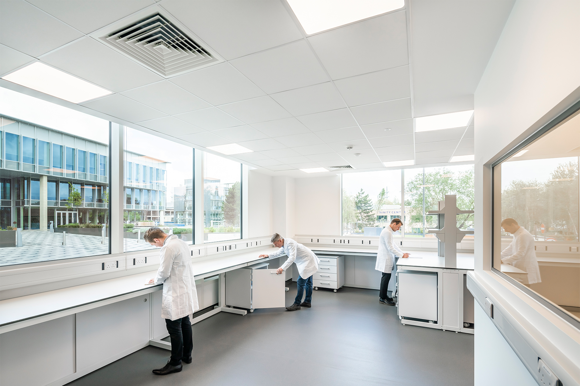 Plot 25 (The Bio Innovation Centre), rated BREEAM Very Good, hosts 28 individual flexible laboratories with dedicated write up rooms, and large open plan biology and chemistry spaces, with state-of-the art support facilities including fume cupboards and piped gases by centralised distribution.
