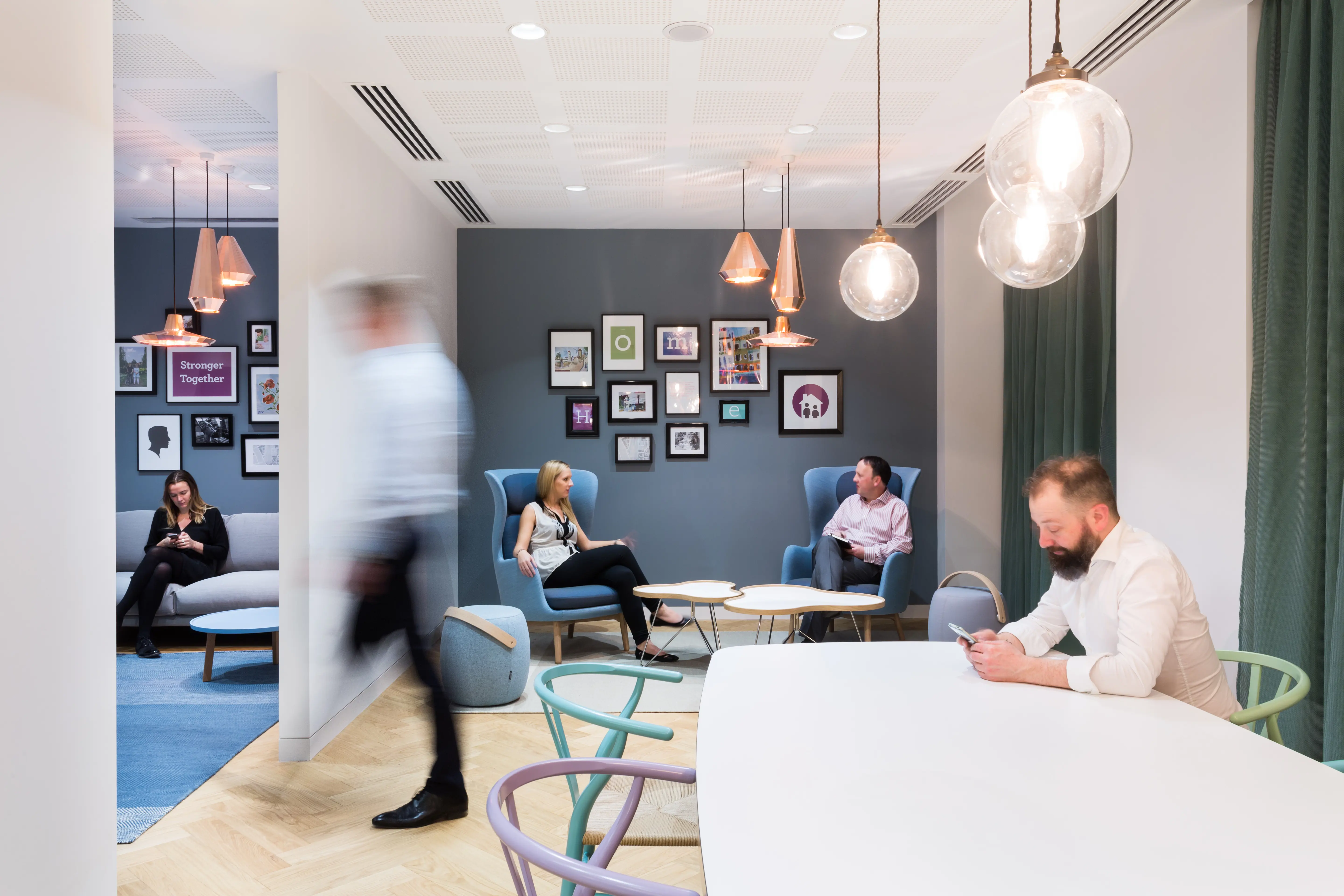 To encourage collaboration and agile working we have created a wide variety of different working zones. The concept takes Circle Housing back to its roots as a supplier of affordable housing; the office design incorporates domestic like settings to differentiate working areas, creating a laid back, flexible and comfortable feel.