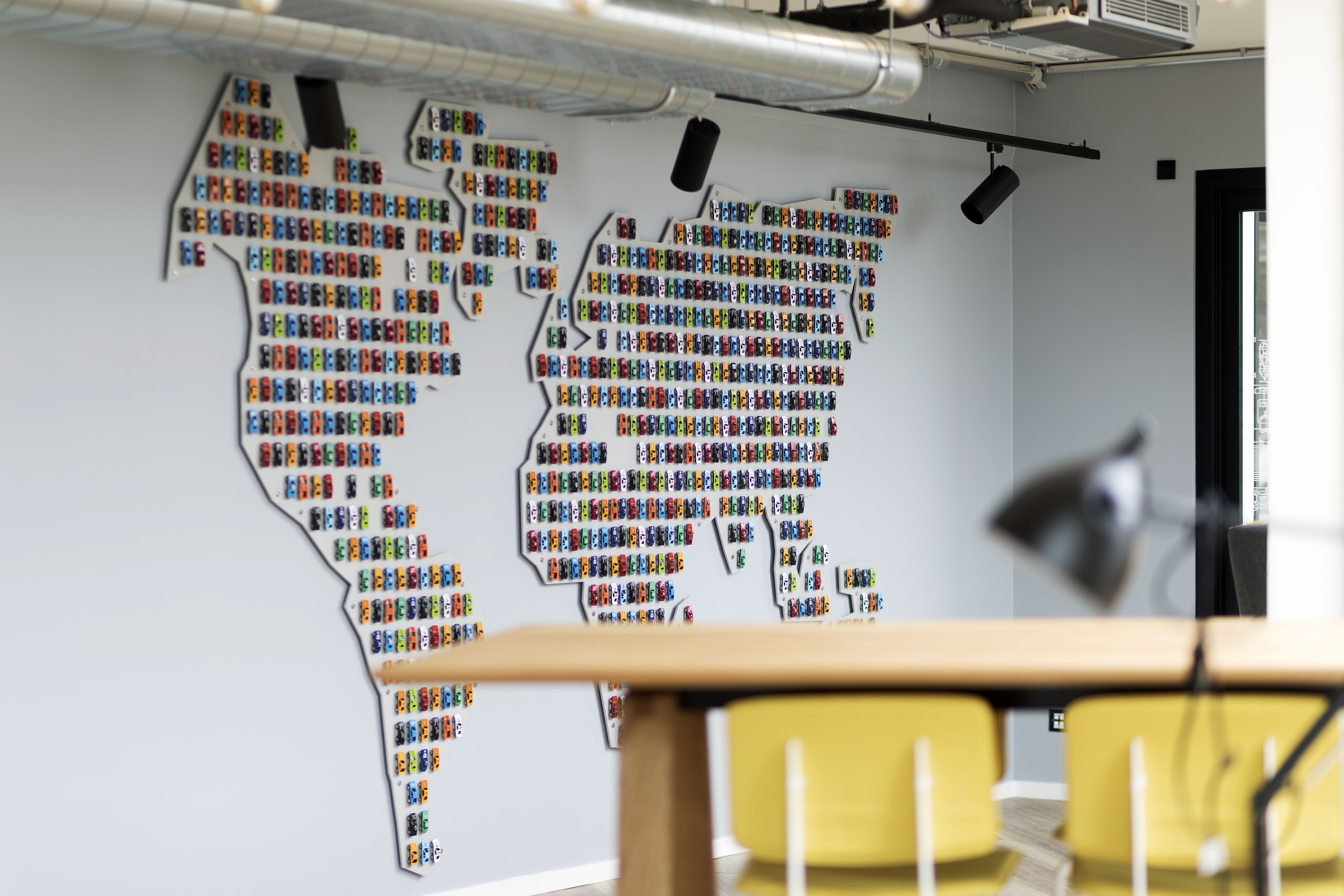 To celebrate access to this new global market in their reception we created a world map using hundreds of miniature cars to ensure visitors clearly understood their reach and ambition.