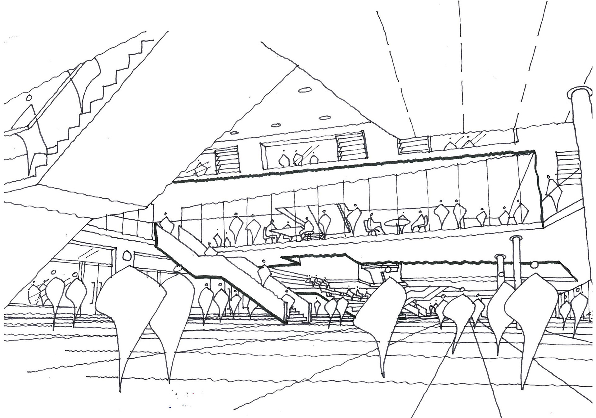 We have expressed the soffits as a universal presence floating above subtly gridded facades and a network of finely detailed columns. By incorporating a lattice style glazing support system we have created a neutral but well-modulated grid that provides a finely detailed backdrop to the outside world. Light and shade and night and day will change the ambience and mood within the building.
