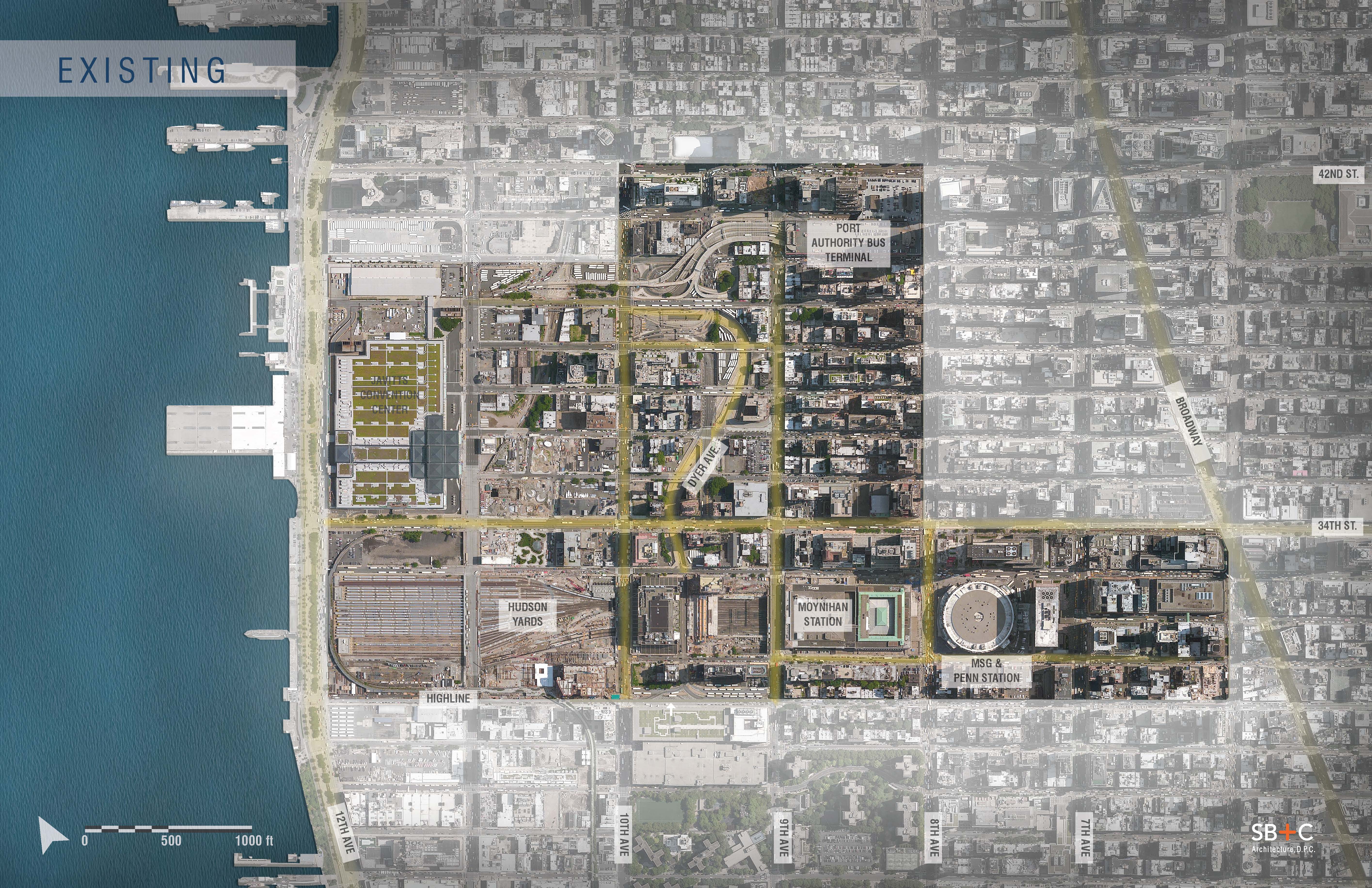 The project is a transport led masterplan and urban regeneration that enhances the urban fabric, particularly for pedestrian use. Currently a run-down area in the west of Manhattan, it has a history of heavy transportation and manufacturing activities.