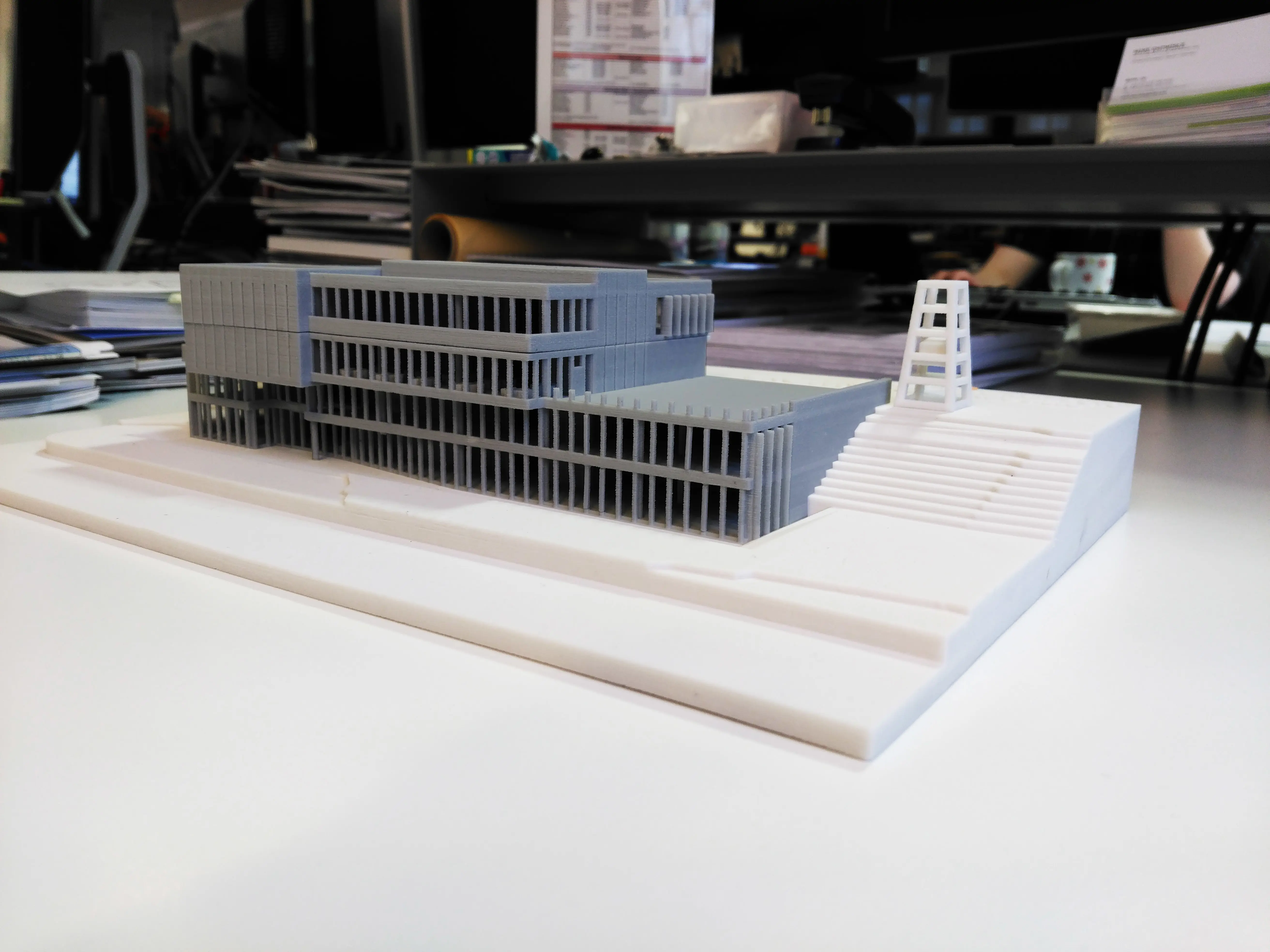 The main entrance to the building rises up as you approach from the road, seeming to peel up and away from the hillside to reveal the entrance reception.