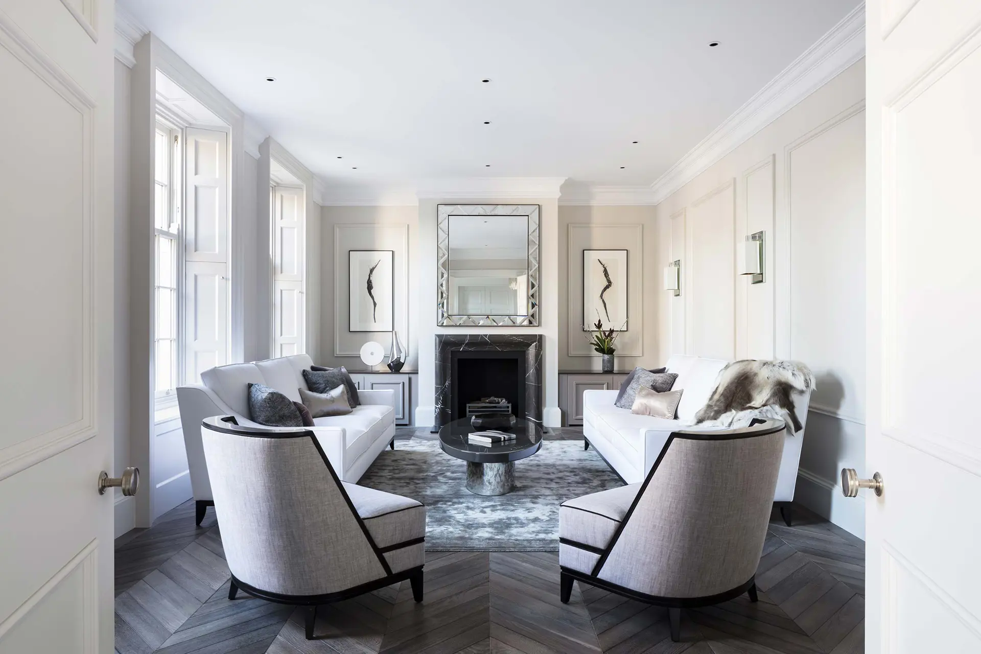 The brief for this three-storey private neo Georgian house was to create a contemporary design, in stark contrast to its exterior that would suit all occasions; a house to live in, entertain in and indulge within. A clean, modern, show-home aesthetic yet functional and child friendly.