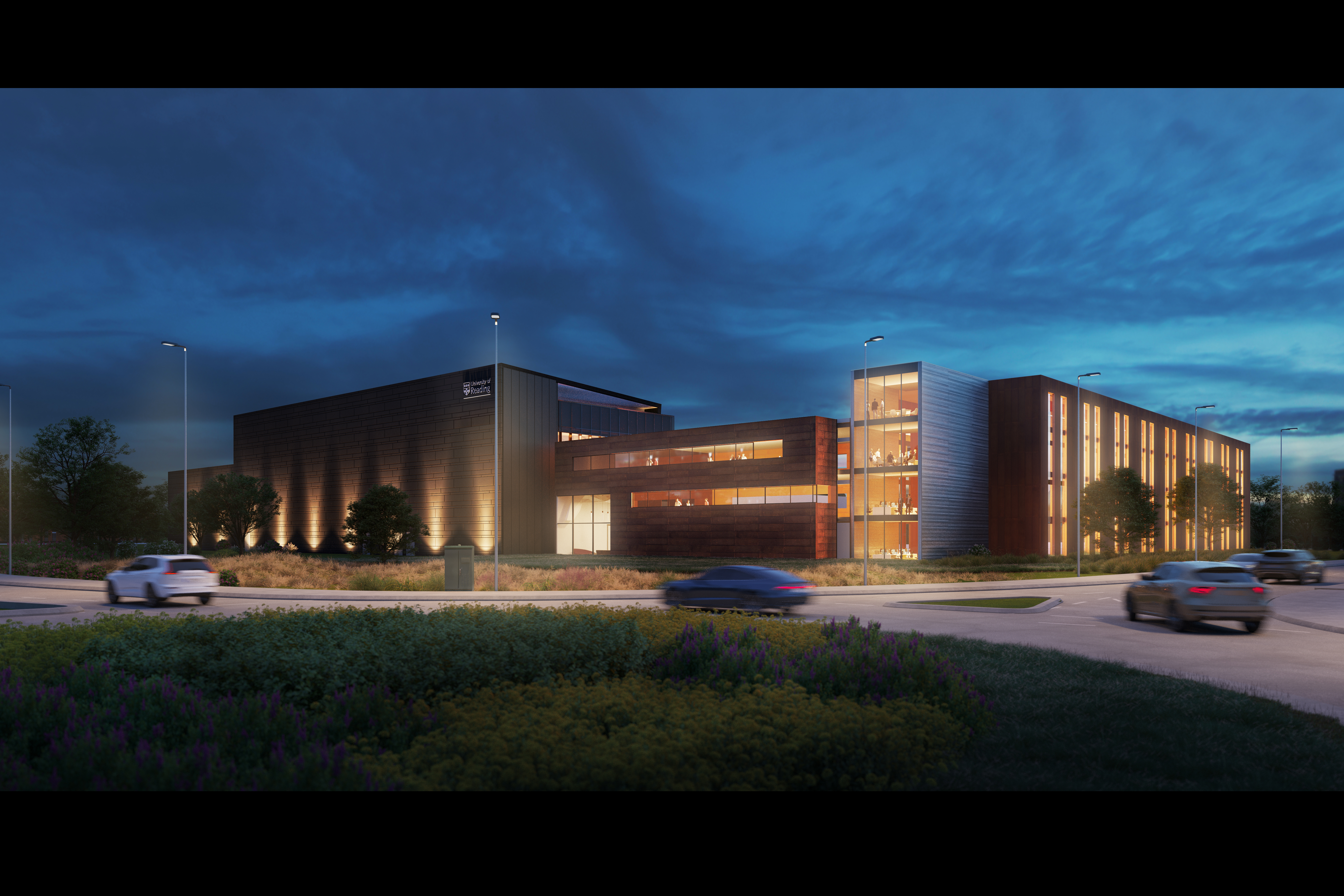 The first two floors are pushed back to create a protective canopy with the production facilities and talent room above. The materials have been chosen to be sympathetic to the existing Gateway 1 building, aiding in evolving the masterplan naturally. The development will also uphold values of environmental sustainability, supporting the University’s aim to become carbon neutral by 2030.