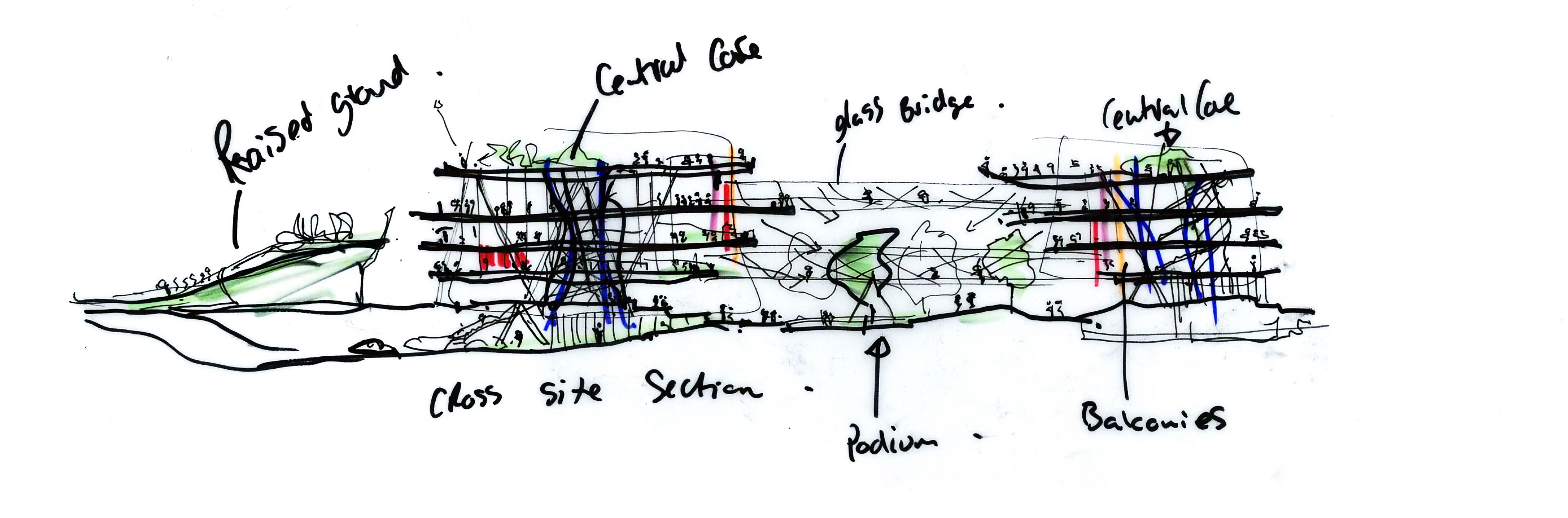 Based upon a simple forum approach, our design places accommodation around a covered heart-space which blurs the traditional boundaries between the buildings and landscape, student and staff areas, formal and informal, learning and social spaces. A translucent roof protects the heart space from direct sunlight and rain, forming a lush green environment for people to work, learn, live and socialise.